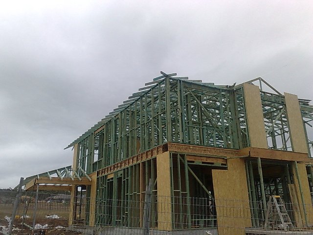 Today saw the house building elves working overtime to get the frame up at 7pm they were still busy at work.